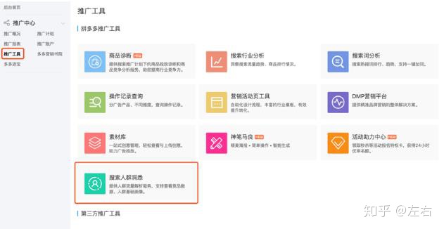 推广工具页面:您可以点击推广工具,即可看到[搜索人群洞悉]入口,点击进入口,即可查看搜索人群洞悉功能界面。